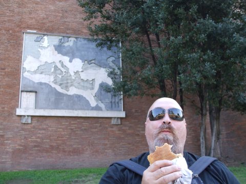 Començava a ser prou tard i, tot i que havíem esmorzat en plan animal, teníem gana, així que vam agafar-nos una focaccia en un remolc dels que hi ha pel voltant del coliseu, tot i que la clavada (principalment per la beguda) va ser espectacular. |