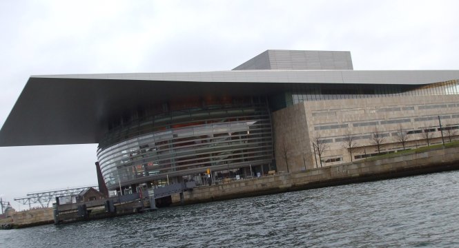 A la riba d'aquest canal i amb un petit moll propi per rebre visitants, s'hi pot veure el modern edifici de l'Òpera. |