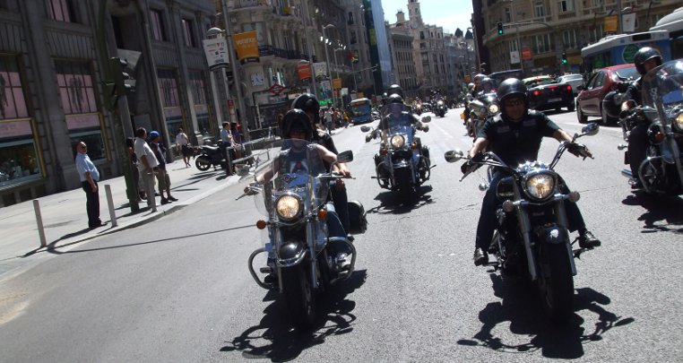 Van arribar unes quantes motos més i vam sortir en comitiva en direcció al centre de la capital de l'estat, passant entre altres llocs emblemàtics per la Puerta del Sol, on hi havia acampats els indignats del moviment 15-M. |