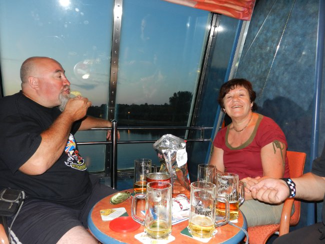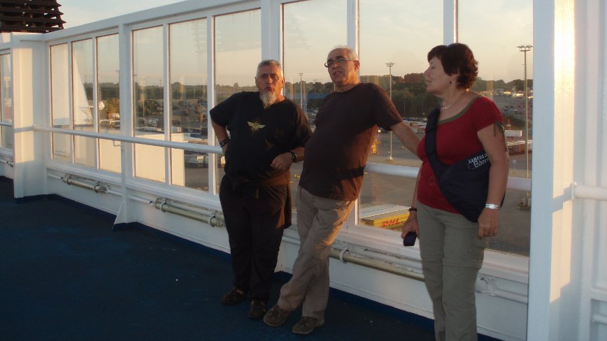 Durant les més de dues hores d'espera, vam aprofitar per visitar la botiga duty free del port, on els camioners s'avituallaven d'alcohol a carretons i on nosaltres també vam comprar cerveses i Bacardí. Finalment, ja passades les vuit del vespre, vam embarcar. |
