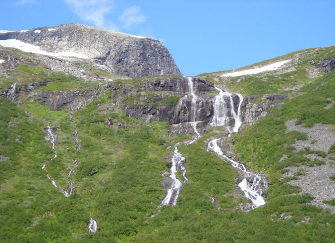 cascada Stigfossen cau del vessant de la muntanya uns 320