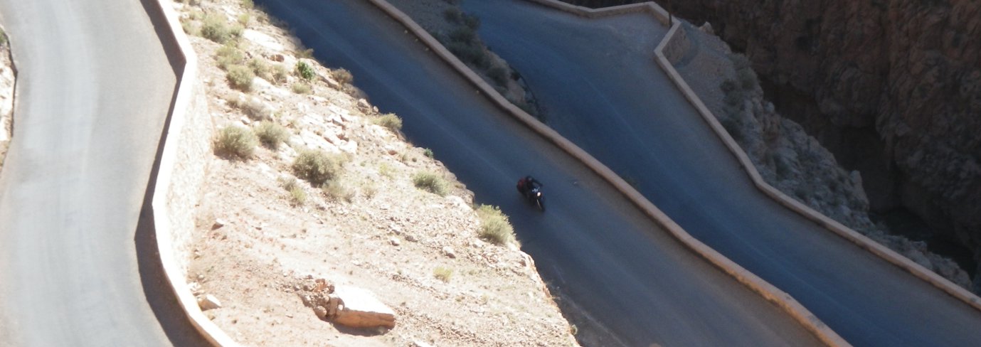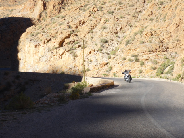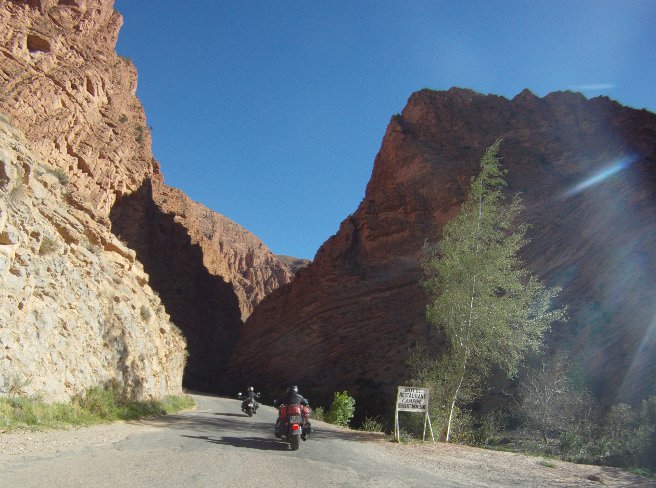 Les dues gorges no estan a gaire distància, però em sembla recordar que vam passar d'una regió a una altra. A més, la imatge de la carretera canvia perquè al fons apareixen els cims nevats de l'Atlas. En aquesta zona ens vam creuar (i saludar) amb el grup de motos en el que anava el Ramon de Vic i altres mototuristes catalans, el que passa és que no estàvem segurs de que fossin ells i no vam aturar-nos. |