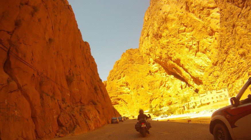 A Tinerhir vam agafar el trencall cap a les Gorges del Todgha i la carretera es va convertir en un camí mal asfaltat, ple de forats i molt estret i a més en algun tros hi havia grava per acabar-ho d'arreglar. |