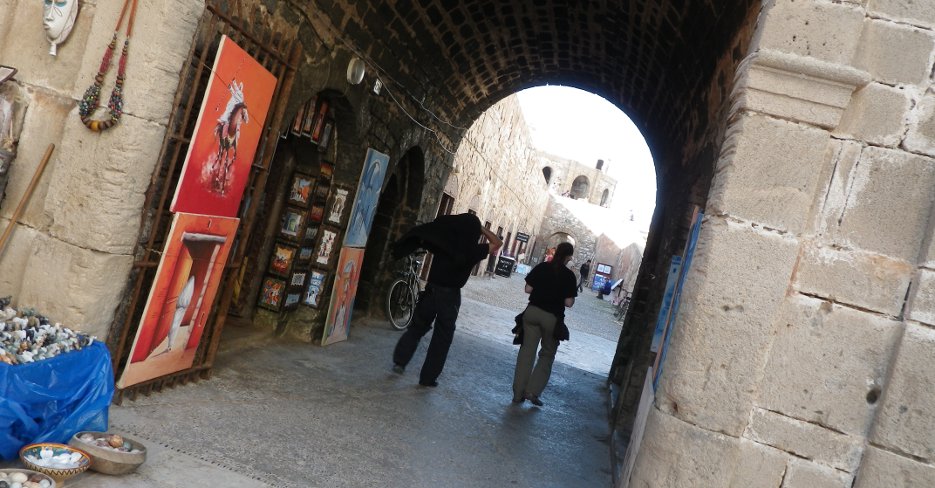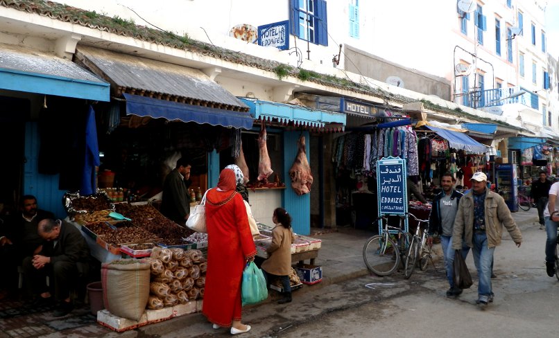 Vam tornar sobre les nostres passes per endinsar-nos a la medina, que no és pas com la resta de medines que havíem visitat, doncs té un traçat molt més ampli i menys caòtic, al voltant d'un carrer principal on les botigues són pràcticament totes de souvenirs. A més, un altre tret característic és la barreja de botigues: malgrat que encara hi ha un cert ordre gremial, hi ha moltes botigues on no toca que hi siguin. |