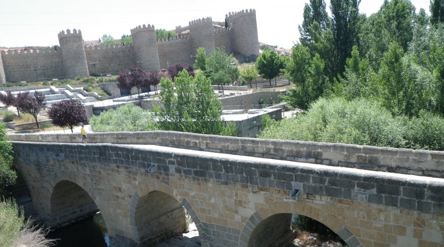 Vam creuar una porta i vam passar a tocar de les motos, resseguint altre cop la muralla en sentit horari fins que vam travessar el riu Adaja, mentre el nostre guia anava aturant de tant en tant la gravació per complementar o ampliar ell les explicacions, sorprenent-nos molt gratament. |