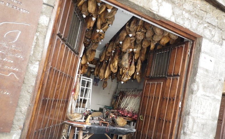 A més de les moltes botigues de souvenirs, vam poder veure vestigis de la indústria agroalimentària i del comerç típics de la zona, basats en els pernils, els embotits, els foratges i els dolços, entre els que hi destaquen els torrons. |