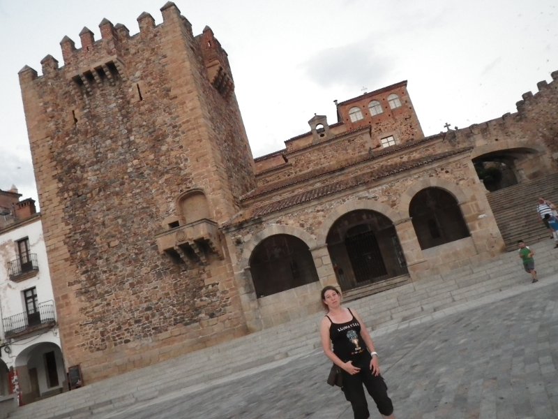 Per aquesta conegudíssima porta d'entrada al casc antic de Càceres nosaltres vam entrar a la part nova per la Plaza Mayor, un immens rectangle amb edificis amb porxos del segle XVI que s'ha utilitzat com fira d'artesans, plaça de toros, mercat i escenari de tornejos i jocs de canyes des de la reconquesta cristiana, és a dir que la vida urbana ha girat al seu entorn. |