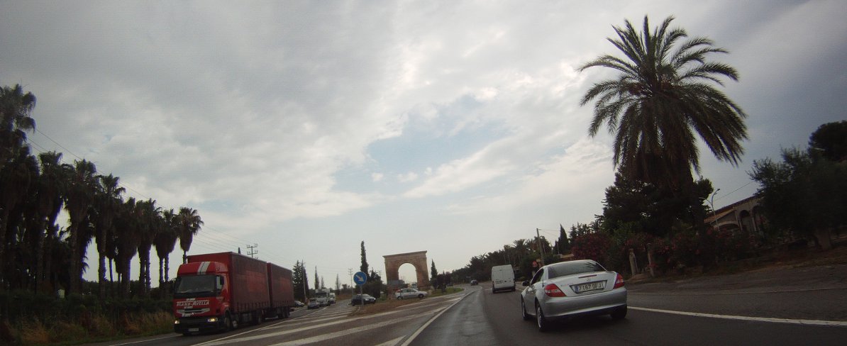 Acabada la zona de boira i baixant cap a Riudecols, va començar a ploure amb ganes, complicant una miqueta el viatge i enfosquint el panorama. |