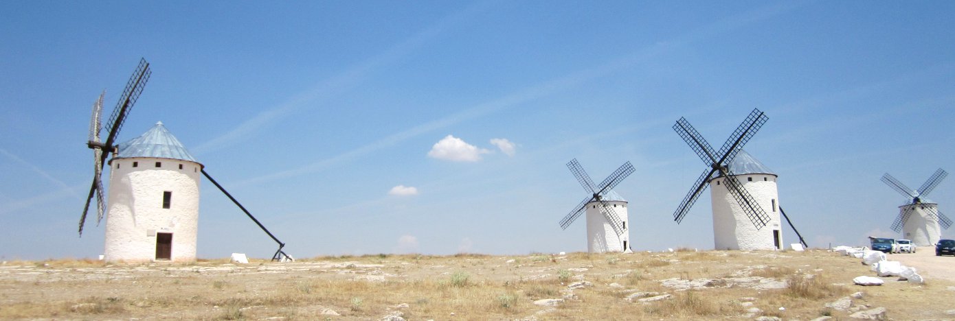 La veritat és que no sé si seran precisament aquests molins o no els de la famosa novel·la, doncs n'hi ha molts per la zona, però el cas és que n'hi ha deu ben a tocar l'un de l'altre i tres d'ells són originals dels segle XVI. |