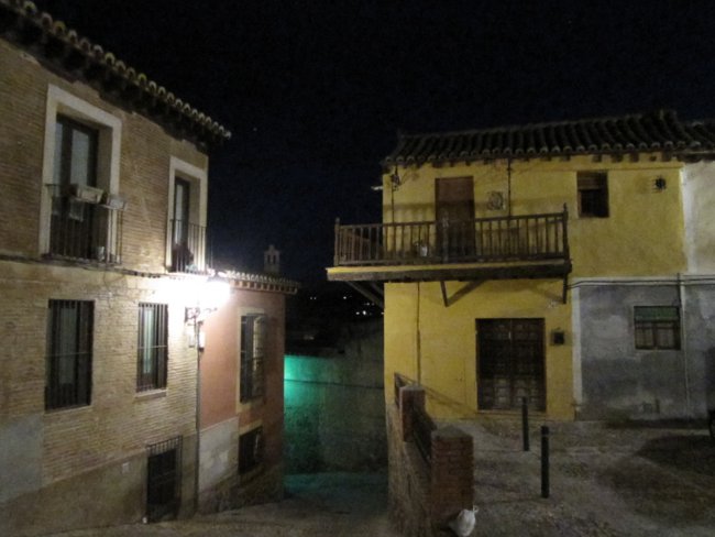 Poc abans de baixar a l'spa vam contractar telefònicament una visita guiada nocturna, així que cap al vespre vam agafar un taxi fins la Plaza Zocodover, vam buscar un lloc per sopar i en una preciosa placeta a la que s'accedia per un bonic pòrtic vam trobar un bar on vam demanar entre altres plats, unes carcamusas, sense saber que estàvem al local que les va inventar. |