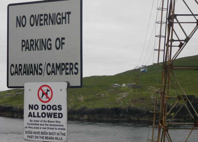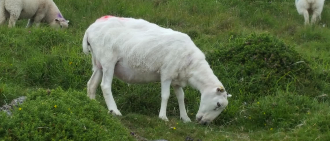 Com que la intenció era tornar aviat, enlloc d'agafar el camí (a Dursey Island no hi ha pas carreteres i de fet els medis de transport més habituals són ases, motocicletes i les pròpies cames) que recorre els sis quilòmetres i mig de l'illa de punta a punta, va agafar el camí que duia cap a un embarcador de pescadors i allà va trobar més ovelles. |