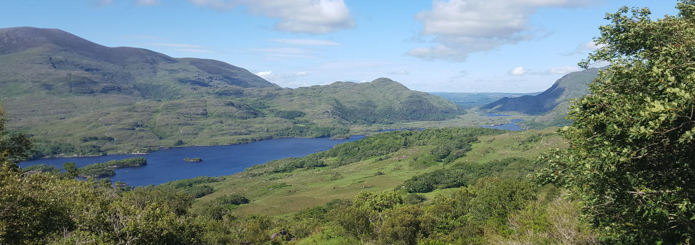 Abans d'arribar a Killarney, vam travessar el Killarney National Park, passant a la vora de l'Upper Lake, el Muckross Lake i el Lough Leane, una zona molt maca, però més turística, així que no ens va venir tan de gust aturar-nos per la quantitat de cotxes i autocars que hi havia a cada mirador, tot i que sí que ho vàrem fer un cop. |