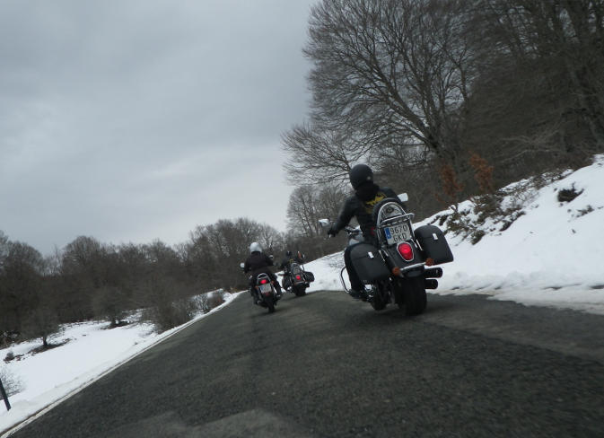 sobre les motos en direcció a la propera serra d'Aralar. |